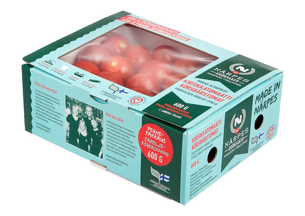- Försäljningsparti:Körsbärstomaterna finns i 250 g förpackningar, i 600g familjeförpackningar och i stora 800g HEVI-påsar.