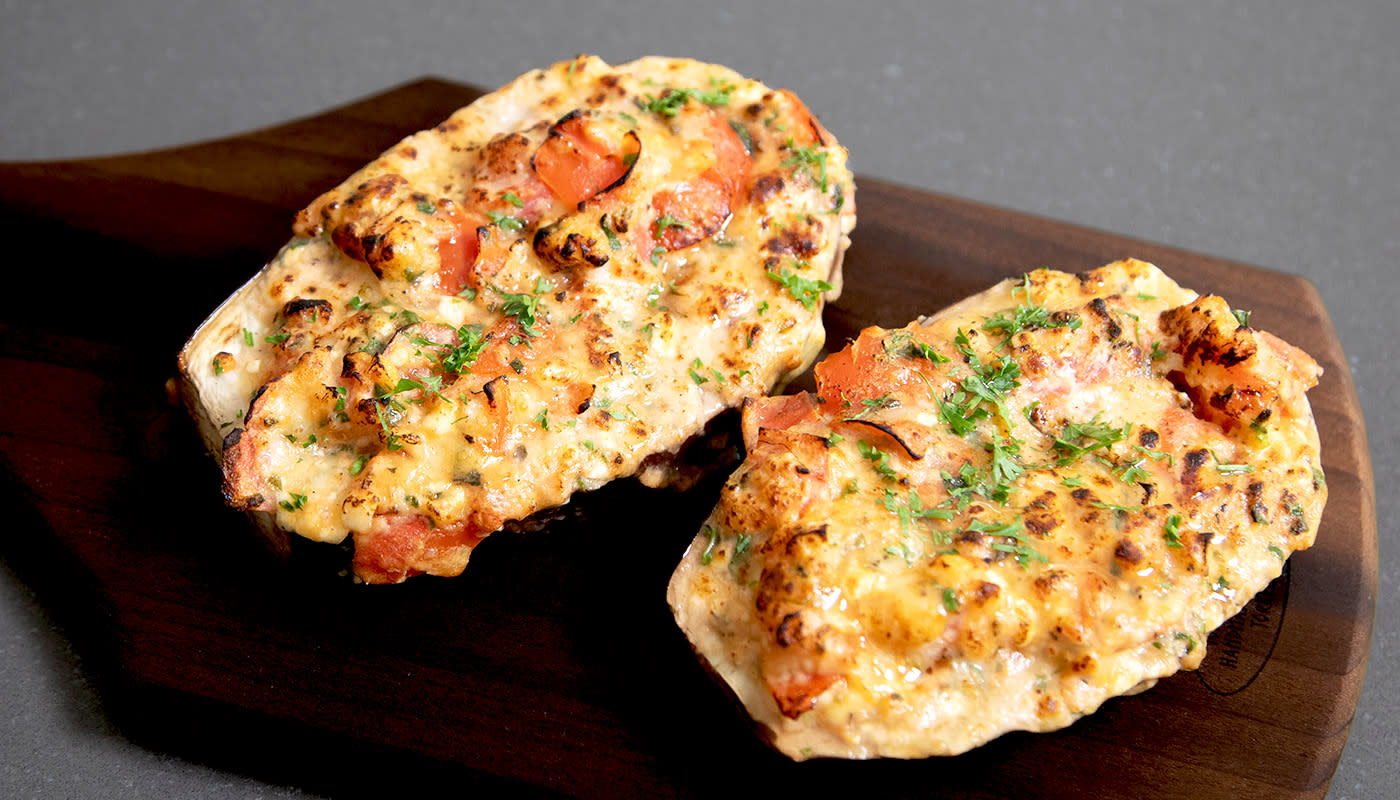 - Bred fyllningen över auberginerna och grilla i cirka 30 minuter tills de är genomstekta.