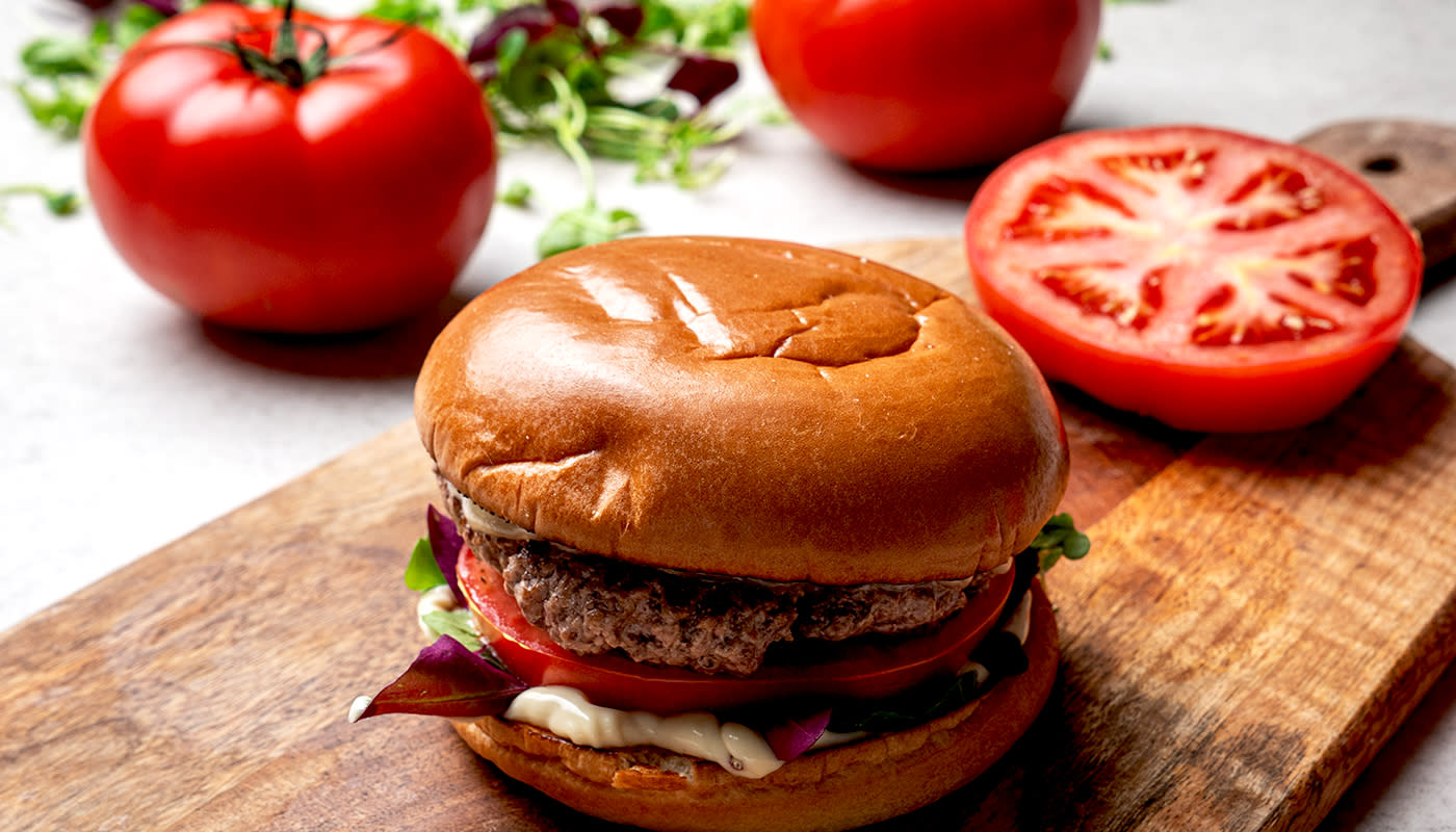Denna utsökta grillburgare kombinerar perfekt en saftig nötköttsbiff, smältande cheddarost och en härligt saftig bifftomat. Använd briochebröd som ger burgaren en lyxig och mjuk konsistens. Majonnäs, senap och ketchup fulländar smakupplevelsen. Grilla burgarna enkelt och snabbt – de är det perfekta valet för sommarens grillkvällar och fester. Njut av den perfekta grillburgaren!